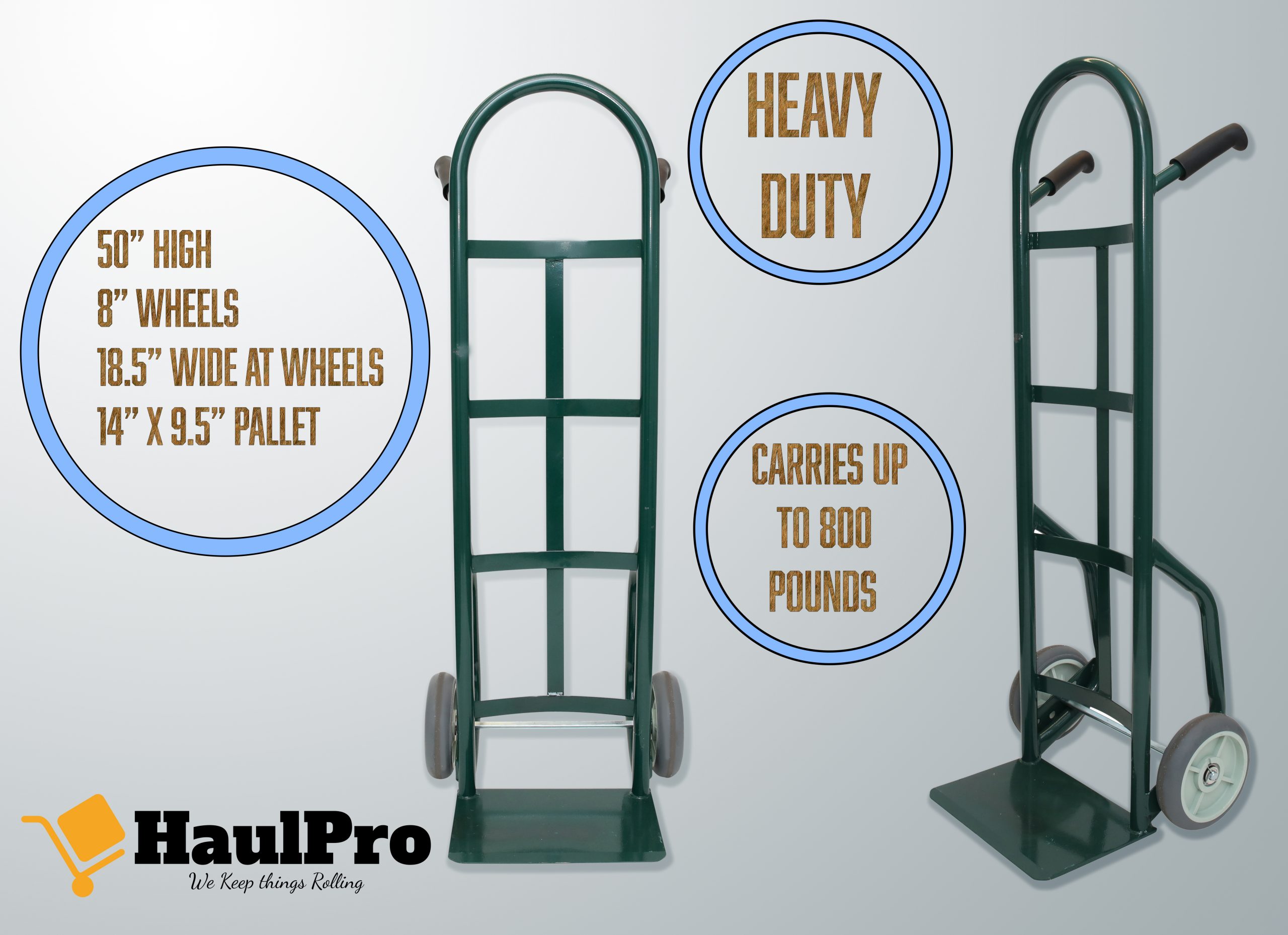 Green Hand truck 8″ wheels